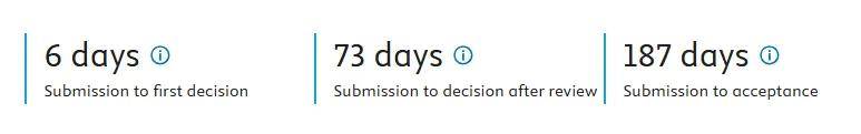 从该刊官网消息来看,期刊审稿效率表示亮眼:初审环节仅需6天,平均录用周期6个月摆布,属于高效程度。